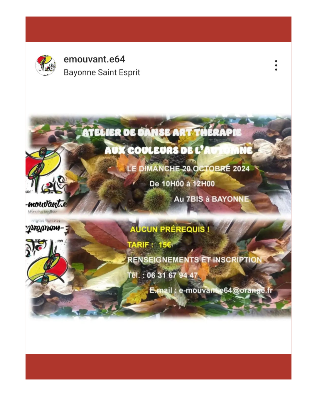 Atelier Danse Art Thérapie le vendredi 8 novembre 2024