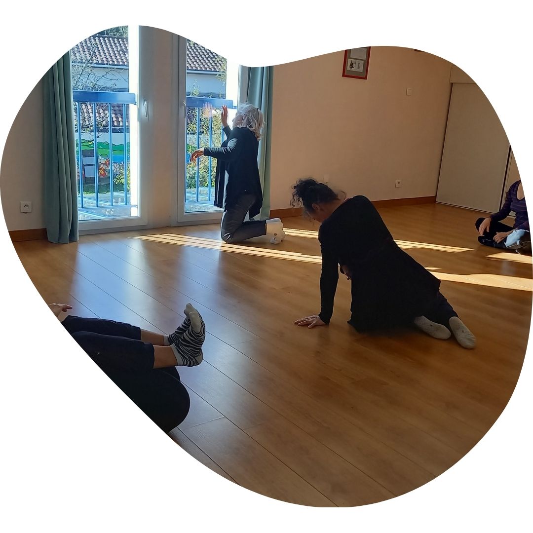 C’est un espace de partage, de rencontre à partir d’un cadre bien défini dans lequel les propositions données vous permettent de danser librement, en laissant la place à votre imaginaire, à vos sensations et de développer votre créativité.